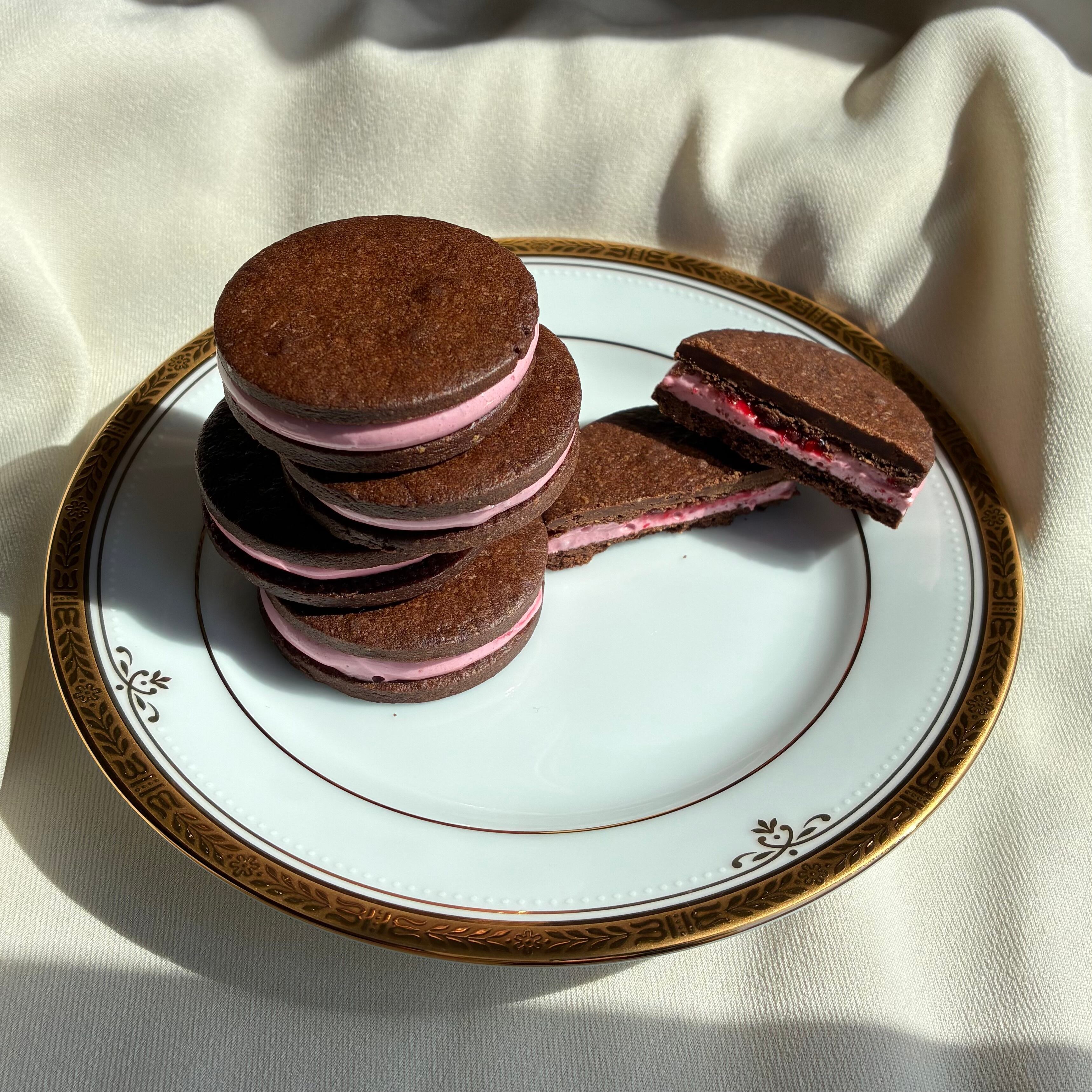 シュクレショコラの生地でサンドしました。